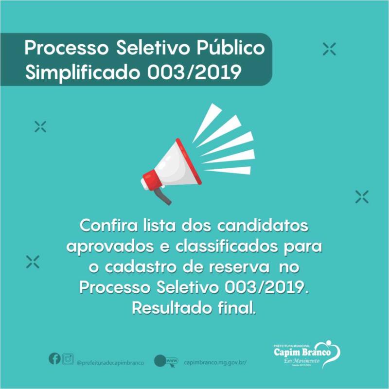 Resultado final do Processo Seletivo Público Simplificado nº 003/2019