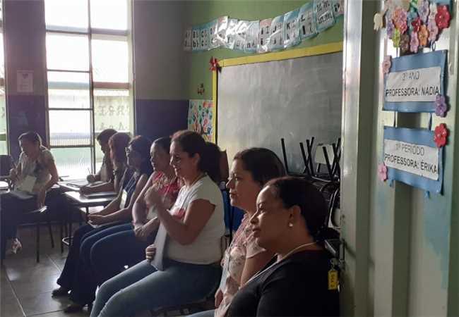 Capacitação foi realizada na Escola Municipal Deputado Emílio de Vasconcelos.