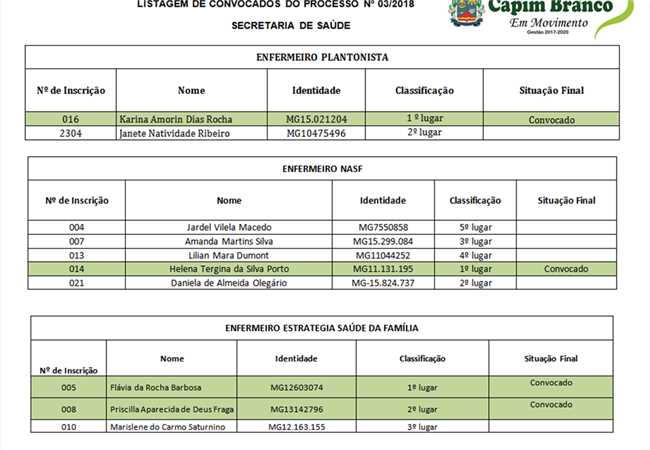 Secretaria Municipal de Saúde: Convocados do Processo nº 03/2018