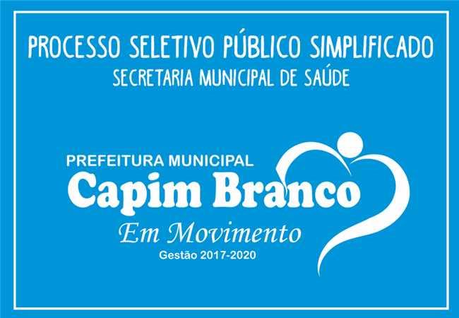 A Secretaria Municipal de Saúde abrirá as inscrições para o Processo Seletivo Simplificado entre os dias 8 e 10 de janeiro, no horário de 9 às 12 hrs e de 13 às 16 hrs, no prédio da Prefeitura Municipal de Capim Branco (Praça Jorge Ferreira Pinto nº 20, Centro).