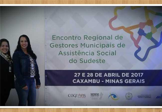 Secretária Municipal de Desenvolvimento Econômico e Social e Coordenadora do CRAS marcam presença no Encontro Regional de Gestores Municipais de Assistência Social do Sudeste.