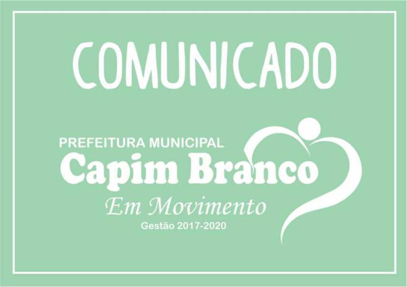A Prefeitura Municipal de Capim Branco e a Secretaria Municipal de Saúde informam que a partir do dia 06/06/2018 o horário de atendimento médico da Unidade Básica de Saúde “Domingos Ferreira Valadares” foi estendido para 24 horas nas SEGUNDAS, QUARTAS, SEXTAS, SÁBADOS, DOMINGOS E FERIADOS.