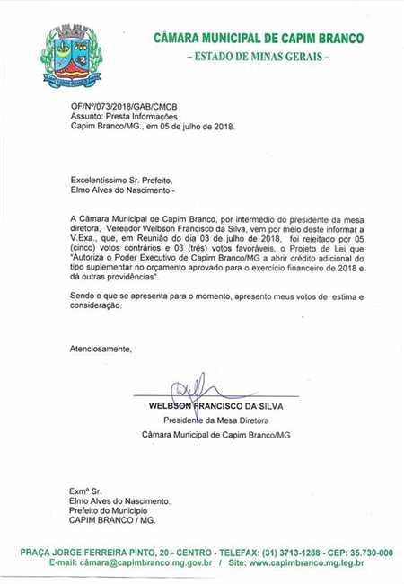 Ou seja, se dependesse dos Vereadores Cléucio Raimundo de Oliveira, Fabiano Isaias Alves dos Santos, Jairo do Carmo Adevides, Messias Costa Rodrigues e Fábio de Oliveira Santos (Fabinho), estas ambulâncias não teriam nem mesmo sido adquiridas e o povo de Capim Branco mais uma vez teria perdido o recurso recebido do Governo Federal para comprá-las.