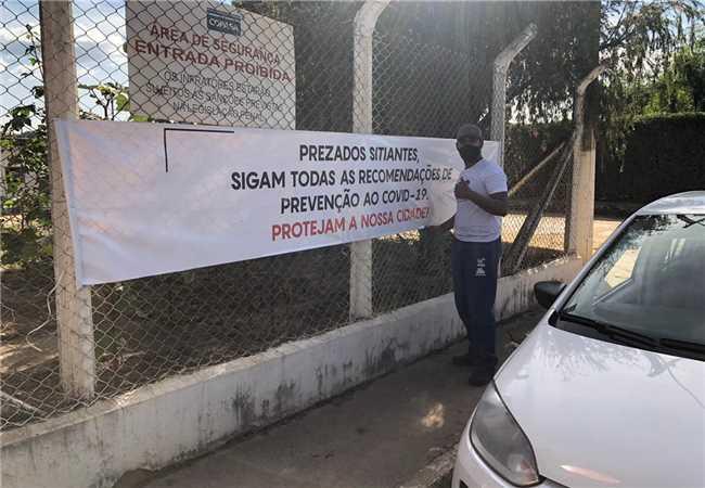 Foram realizadas distribuição de máscaras, álcool em gel, planfleto informativo e afixação de faixas de orientação.