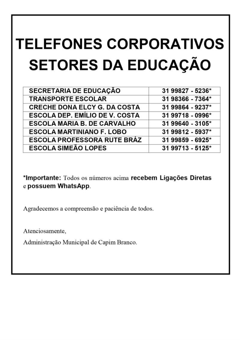 PREFEITURA DISPONIBILIZA NOVOS NÚMEROS DE CONTATO
