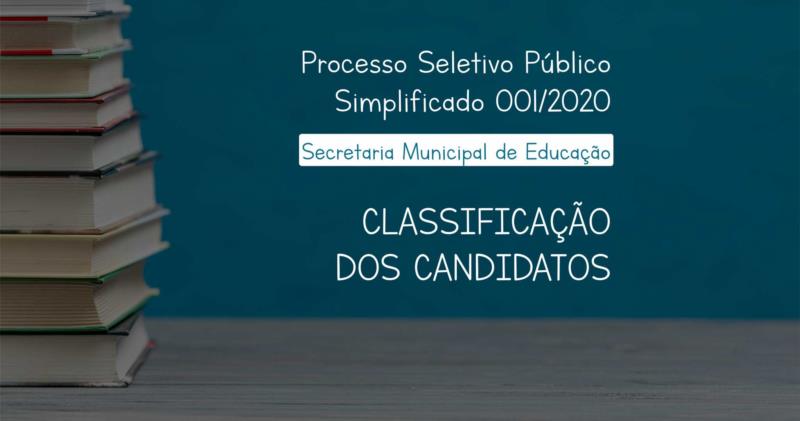 Confira a classificação dos inscritos no processo seletivo 001/2020