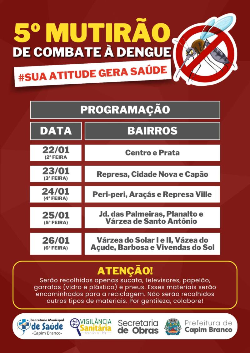 Os materiais serão recolhidos de acordo com o dia designado para cada bairro, conforme descrito na programação abaixo.