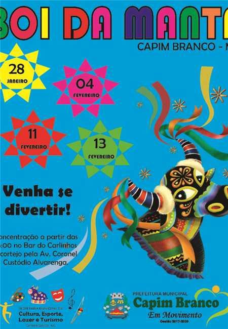 A partir do próximo domingo, 28/01 e nos dias 04, 11 e 13/02, acontecerá a tradicional charanga com a animação do Boi da Manta.