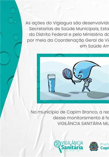 O Programa Nacional de Vigilância da Qualidade da Água para Consumo Humano (Vigiagua) e orienta sobre os cuidados que devemos ter com a água antes de ser consumida e com os reservatórios de água mais utilizados pela população, como caixas-d’água e cisternas, bem como recipientes e utensílios que entram em contato com a água. Esses cuidados ajudam na prevenção de diversas doenças e agravos de transmissão hídrica, tais como: doenças diarreicas agudas, hepatite A, febre tifoide, entre outras.
