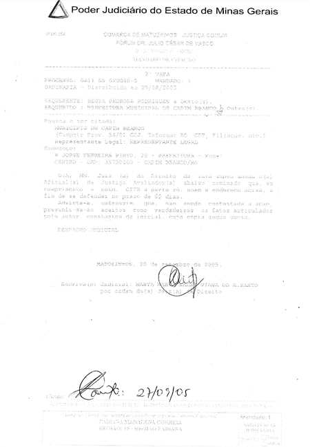 Como se não bastassem as mazelas pendentes deixadas pela gestão anterior, compreendidas pelas inúmeras dívidas, a insuficiência de recursos, os equipamentos e frotas totalmente sucateados, as vias públicas absurdamente danificadas, o prédio onde funciona a Unidade Básica de Saúde com 90% (Noventa por cento) de suas dependências interditadas pela Vigilância Estadual de Saúde, os prédios públicos em geral caindo aos pedaços e gritando por reforma, os convênios pendentes de prestação de contas e colocando em risco a regularidade fiscal do Município, o atual Prefeito Municipal ainda foi surpreendido com ações de cobrança que perduram desde setembro/2005 sem que nenhum dos prefeitos anteriores tenham se esforçado para encontrar solução para o problema.